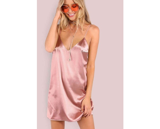 Merry See Saten Salaş Mini Elbise Pembe